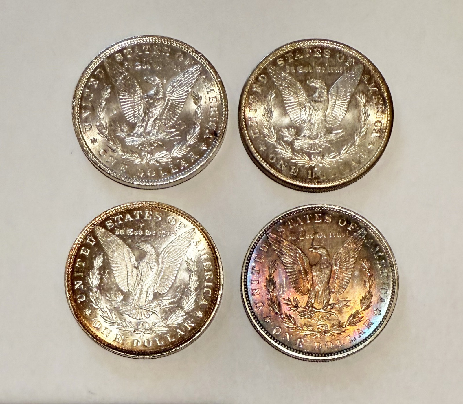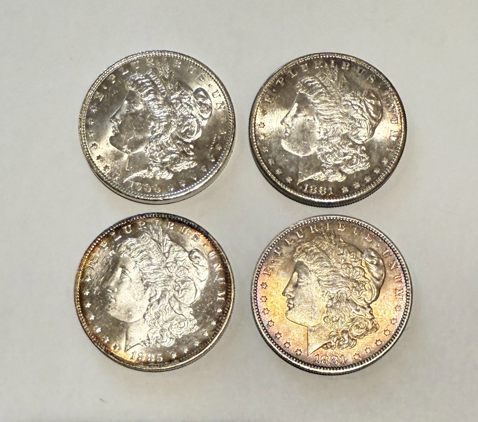 1900 O, 1885 O, 1881 S 1884 P, Uncirculated Morgan Silver Dollars 4 coins!