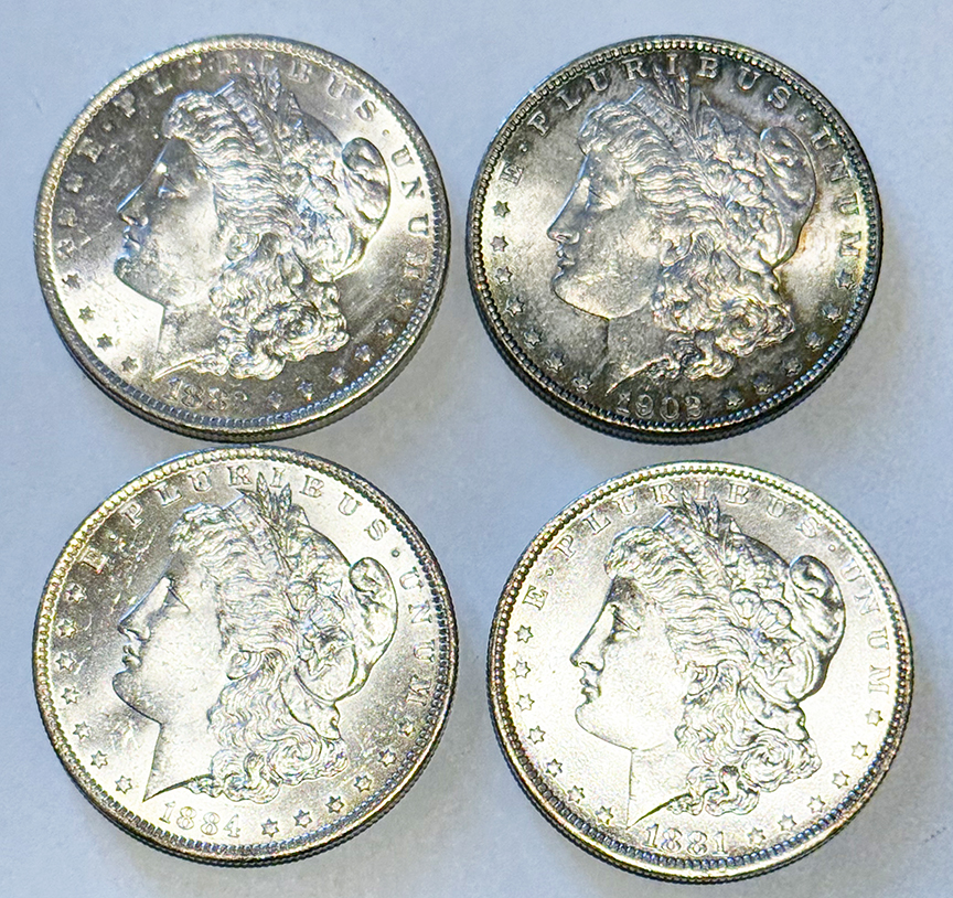 1902 O, 1883 O, 1881 S 1884 0, Uncirculated Morgan Silver Dollars 3 ounces SLV!